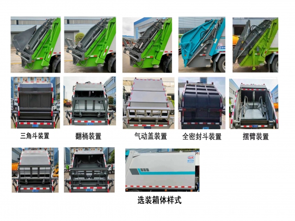 其它 | 1.專用裝置為垃圾箱體、卸料機(jī)構(gòu),主要用于收集、轉(zhuǎn)運(yùn)垃圾作業(yè)功能;2.儲能裝置單體生產(chǎn)廠家/型號:力神動力電池系統(tǒng)有限公司/LP54173210-202Ah.儲能裝置總成生產(chǎn)廠家:力神動力電池系統(tǒng)有限公司;3.驅(qū)動電機(jī)類型為永磁同步電機(jī),型號為TZ370XS-LKM1102,額定功率為80kw,峰值功率為160kw.ABS系統(tǒng)生產(chǎn)廠家/型號(西安正昌電子有限責(zé)任公司/ZQFB-V);4.側(cè)防護(hù)裝置材料為Q235,連接方式為螺栓連接.專用裝置代替后防護(hù),離地高度為500mm;5.長度/前懸/后懸/后伸對應(yīng)關(guān)系(mm):7750/1250/2300/400;7590/1250/2300/240;7570/1250/2300/220;7750/1200/2350/400;7590/1200/2350/240;7570/1200/2350/220;6.選裝直接供電式ETC車載裝置,選裝后部裝置樣式,選裝工作指示燈,僅在作業(yè)狀態(tài)下使用,行駛過程中不可點(diǎn)亮.選裝后部裝置及外觀樣式. | ||