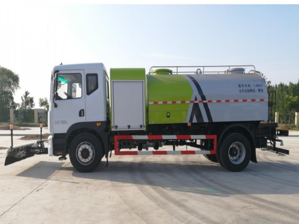 2. 前沖圓錐噴嘴,自動(dòng)控制,操作方便靈活沖洗路面寬度可覆蓋 6 條車(chē)道;后灑圓柱噴嘴,噴出均勻的扇形水霧,寬度可到 16m,能有效抑制路面灰塵;