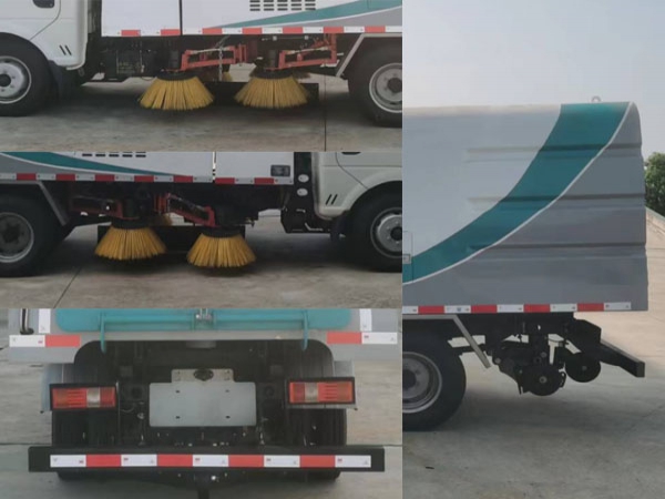 3. 采用“中置四掃盤+噴霧降塵裝置+中心隔板+后置吸嘴”的結構布局,讓清掃過程中砂石不在飛濺揚塵,此布局便于清掃裝置與吸盤的調整與維護,轉場作業時整車通過性好。