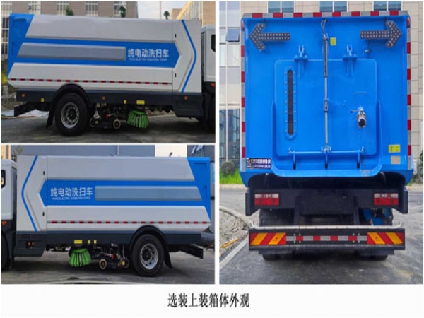 其它 | 該車僅選用5300軸距,裝有吸盤、掃盤、水箱等裝置,用于道路洗掃作業;2.側防護由專用裝置和防護欄組成,防護欄材料:鋁合金,螺栓連接;后下部防護材質:Q235,螺栓連接,截面尺寸240mm×60mm,離地高度490mm;3.儲能裝置種類/單體生產企業/儲能裝置生產企業:磷酸鐵鋰蓄電池/湖北億緯動力有限公司/湖北億緯動力有限公司,磷酸鐵鋰蓄電池/寧德時代新能源科技股份有限公司/寧德時代新能源科技股份有限公司;電機的額定/峰值功率分別為:120kW/180kW;4.ABS型號:CM4XL-4S/4M,生產廠家:廣州瑞立科密汽車電子股份有限公司;5.該車型安裝有具有衛星定位功能的行駛記錄儀,可選裝ETC車載裝置,選裝外觀箱體. | ||