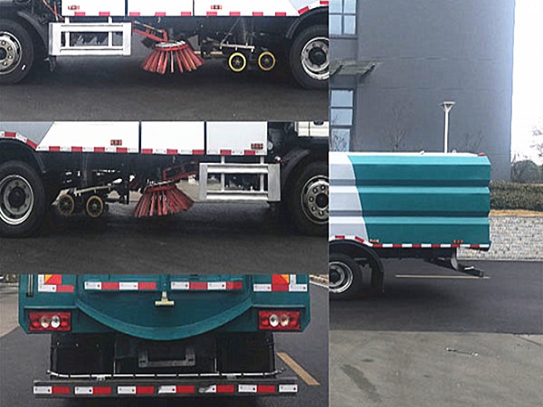 5、左右立掃為單掃盤,減少了掃刷數量和掃刷消耗量,能降低使用成本。左右立掃分開控制,可實現左掃、右掃和全掃等不同作業模式。寬吸嘴的吸口寬度達到 2418mm,確保作業總寬度大于 3.5mm。4 個高度可調的吸嘴輪,能多方面調整和保證吸嘴與路面間的合理間隙。吸嘴內置高壓噴水桿,盡可能多的將高壓洗滌噴嘴布置在吸嘴內部,不但清洗效果好,還能最大限度減少高壓水氣流沖起污物產生的二次污染。