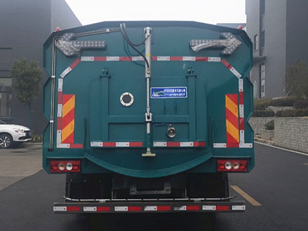 (1) 清水箱充分利用了車載空間,容積大,可達3m3。垃圾箱采用單層304不銹鋼結構,傾翻卸料,帶高壓自潔裝置。自潔裝置可在垃圾箱卸料時幫助卸料,清洗垃圾箱內部。 。