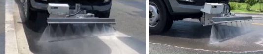 配置前噴水架,通過線狀高壓水幕對道路路面進行沖洗,沖洗寬度≥1.7m;可升降(上下 100mm),可左右搖擺 18°;